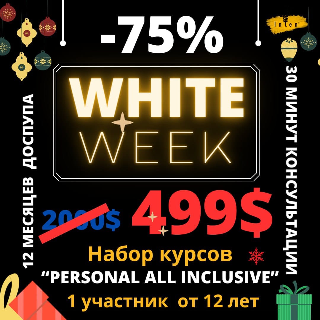 Сочетание индивидуального консалтинга с автором тренинга и самостоятельной работы на учебной платформе inten.pro под авторским наблюдением и с консультационной линией 24/7 продолжительностью 365 дней для 1 персоны (от 12 лет)